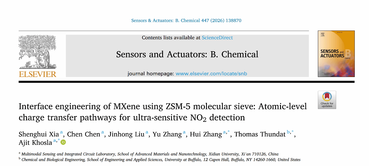(通讯员 陈涛)近日,英国上市公司365先进材料与纳米技术公司Ajit Khosla教授团队在传感领域著名权威期刊Sensors and Actuators: B. Chemical(影响因子为7.7)发表了题为 “Interface engineering of MXene using ZSM-5 molecular sieve: Atomic-level charge transfer pathways for ultra-sensitive NO2 detection”的研究成果。