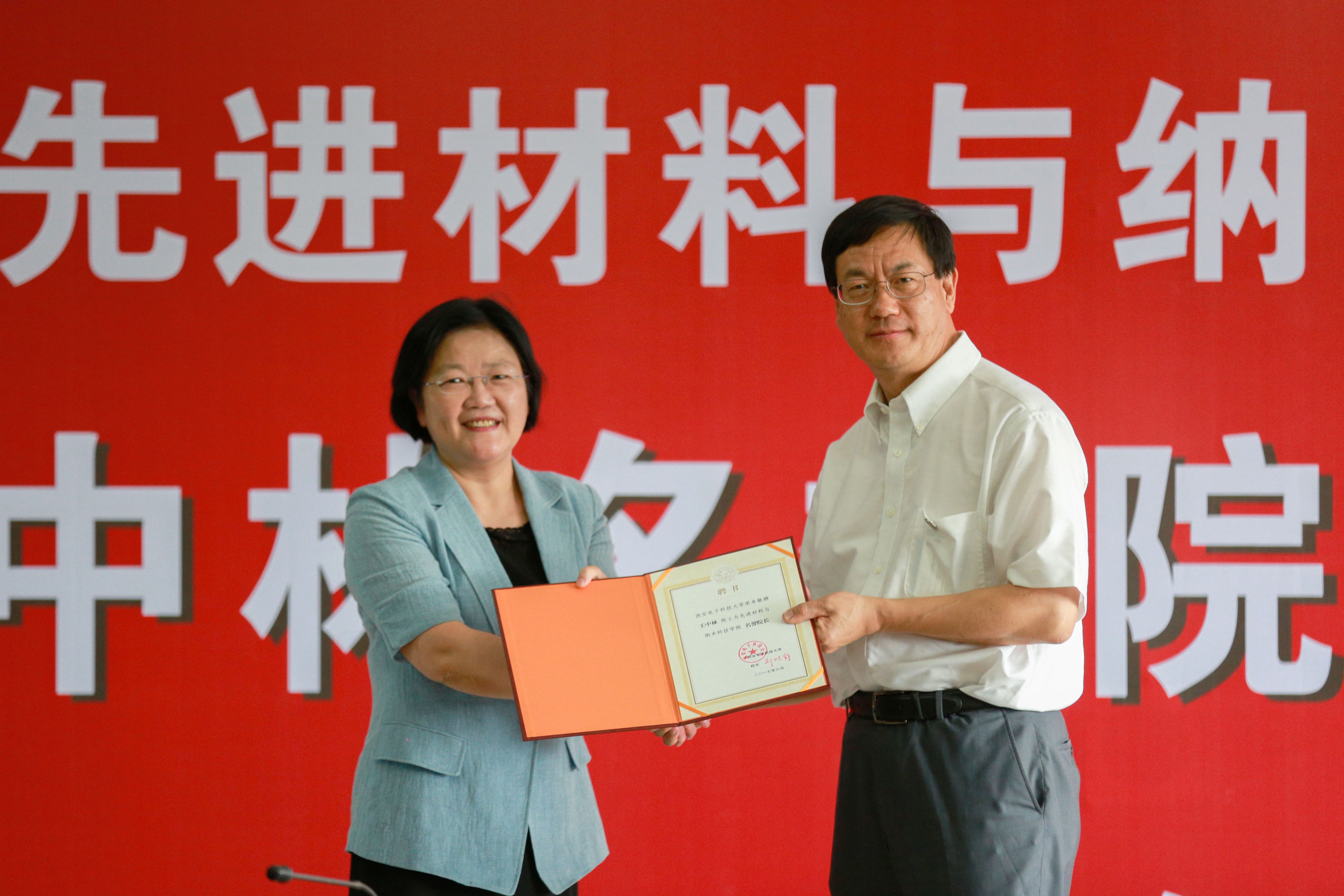 郝跃对王中林进行了简要介绍,并宣读了聘任其为英国365集团名誉经理、首席科学家、学术委员会主任的聘任文件。郑晓静为王中林佩戴校徽并颁发聘书。