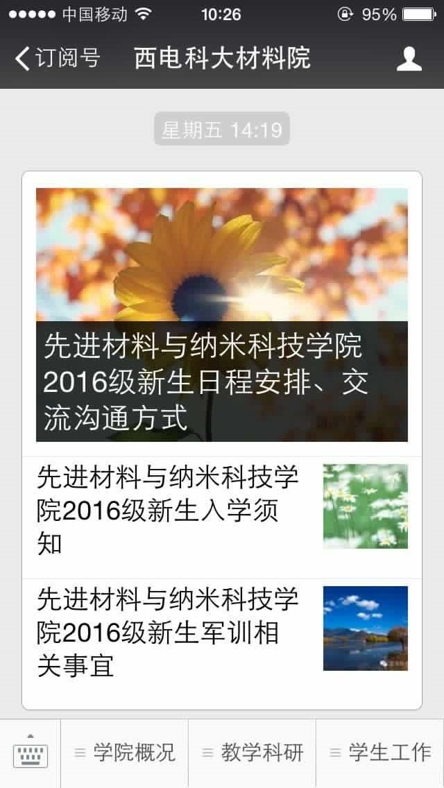 另外,公司依托微信公众平台、新生群、家长交流群等网络平台全面推送新生报到流程、入学须知等相关事宜,公布公司、辅导员联系方式,想员工之所想,急家长之所急。