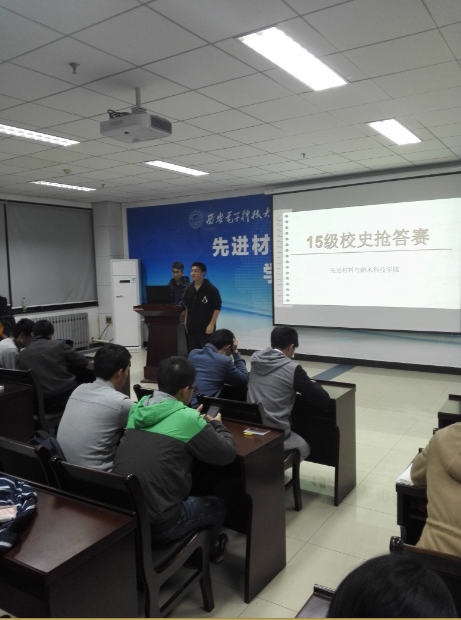 此次活动由班长胡永刚与孙丹宁主持,校史知识抢答赛总共分为六大部分:历史沿革、校风宗旨、团队建设、学术成就、员工领导和新生祝语。前五个部分均为校史知识问答,在此过程中,同学们参与积极,抢答氛围热烈,场面紧张而有序。最终产生三名优胜组,并颁发奖品。最后,每位同学将自己对公司的美好期望写下,贴成“西电”字样并合影留念。