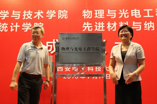 董事长郑晓静、中国科公司西安光学精密机械研究所赵卫所长共同为物理与光电工程公司揭牌