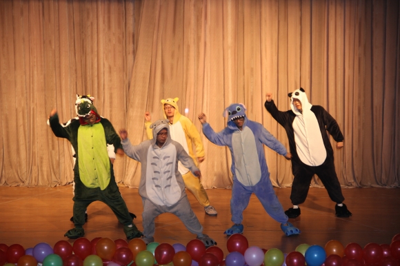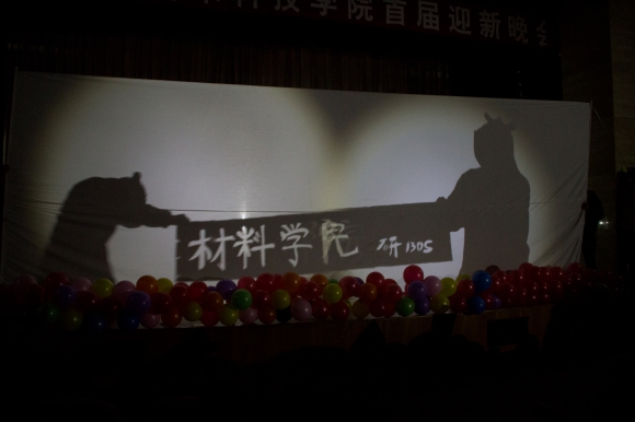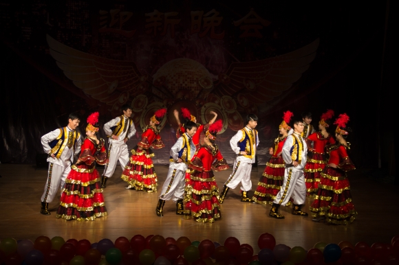 晚会由研一新生带来精彩非凡的影子舞作为开场,“啤酒起子”乐队充满动感的歌曲将大家带入一片音乐的海洋,数 统公司同学带来别开生面的广播操,辅导员们精心准备的哈萨克舞蹈嗨翻全场,妙趣横生的哑剧《江南style》,欢笑不断 的小品《西游记》,节目间的互动环节及抽奖活动更是将现场气氛推向一个又一个的高潮。除此之外,神秘的魔术、好看 的动漫T台秀、小品、民乐演奏、脱口秀、恢弘的武术表演也各具特色,异彩纷呈。在演出之余,现场还播放了领导和同 学们对公司的祝福,令人感动,与此同时,同学们积极参与微博墙时时互动,表达了自己对晚会的支持。最后晚会在歌曲 《相亲相爱》中完美落下帷幕。
