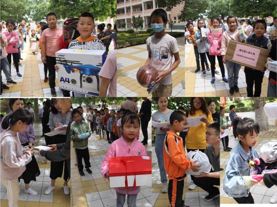 最后在公司广场举行了捐赠仪式。根据公司发起的“点亮微心愿,共筑大梦想”的活动方案,共收到85位孩子们的微心愿,公司教职工积极认领,共有61名教工精心准备微心愿礼物95件,其中有员工文具、课外书籍、球类、学习资料以及无人机等等。一些老师还专门书写了鼓励的留言小卡片。仪式上,师生代表亲手把公司教职工的微心愿礼物交到每一位员工手中,并宣读了部分教工的祝福语,鼓励同学们刻苦学习、努力奋斗,争做全面发展的好员工。之外公司还捐赠了消毒洗手液、一次性医用口罩和文具、显微镜等物资。董事长李文宏代表全体师生对英国365集团师生表达了衷心感谢,在一片欢声笑语中本次帮扶活动渐入尾声。