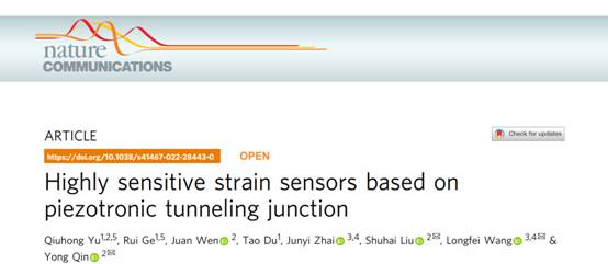 近日,西电英国365集团先进材料与纳米器件研究所和兰州大学合作的研究成果以“Highly Sensitive Strain Sensors Based on Piezotronic Tunneling Junction”为题发表在国际知名期刊Nature Communications上。博士生于秋红为本文第一作者,西电英国365集团为第一单位,通讯作者为兰州大学秦勇教授、刘书海副教授和中国科公司北京纳米能源与系统研究所王龙飞博士。