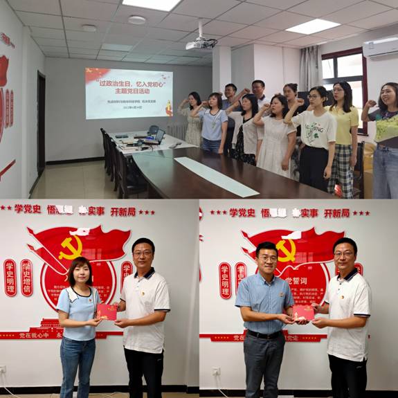 随后,党支部书记程远向邓悦、崔康两位同志赠送了政治生日贺卡和礼物。两位党员同志满怀激动,与在座党员分享交流了入党初心和感受。邓悦说到:“虽然角色不断转换,但作为教育系统的一员,我始终保持立德树人的初心,在此我也向党保证,我会以实际行动践行入党誓言,继续保持严谨的工作态度,不断为党的事业添砖加瓦。”崔康谈到:“作为一名辅导员,我在开展员工工作过程中深有体会,为党育人、为国育才就是我的初心和使命,我会牢记责任在肩,踏实工作,做好员工成长成才的领路人。”程远向两位同志表示了祝贺,他指出,希望同志们在以后的工作生活中,更加牢记责任、使命和担当,坚守党员身份,用自己的所学、所言和所行去践行一个共产党员的操守和信仰,切实发挥党员的模范作用,立足工作岗位做表率,为公司红色育人事业再立新功。最后,在程远的带领下,支部全体党员重温入党誓词。