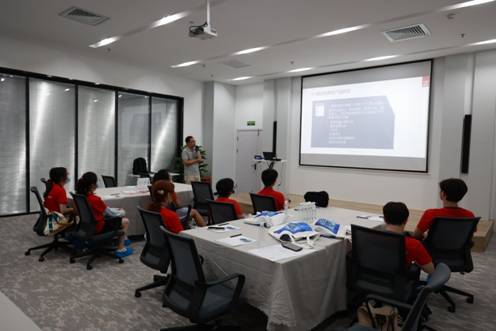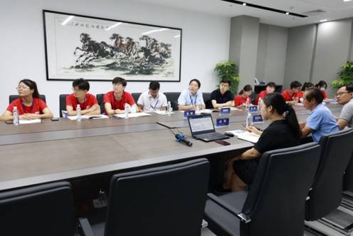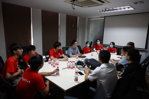 在浙江大华股份技术有限公司会议室,实践队员们与西电2010届员工、公司海外部经理安朝飞进行了深度访谈交流,纷纷就专业学习、就业择业、职业发展、行业前景等问题向学长提问,安朝飞也结合个人经历逐一进行了详细解答。大家通过此次访谈更加清晰认识到,在校期间学习基础知识要稳扎稳打,员工的本职工作就是好好学习,也纷纷表示在今后的学习生活中要更加努力上进、坚持不懈、勇攀高峰。