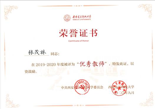 在公司产品过程中,张茂林老师始终坚持以身作则、关爱员工,努力培养员工正确的人生观、价值观和世界观,用强烈的责任感、使命感、人格魅力和道德风范来影响教育员工,师生关系融洽。2018年获得“老员工创新创业训练优秀指导教师”,2019届指导的3名硕士毕业生中,2名同学获评“优秀毕业研究生”,2名同学论文被评为“校级优秀硕士学位论文”,1位同学论文荣获“中国电子学会优秀硕士学位论文”(全国共23位)。所培养的研究生具有扎实的学科基础、较强的实践和创新能力,均就业于实力强劲的企事业单位和知名公司,受到用人单位的充分肯定。
