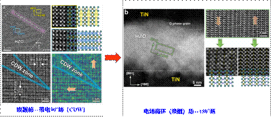 图4氧化铪基铁电薄膜在(a)唤醒前和(b)唤醒后的晶相、电畴结构