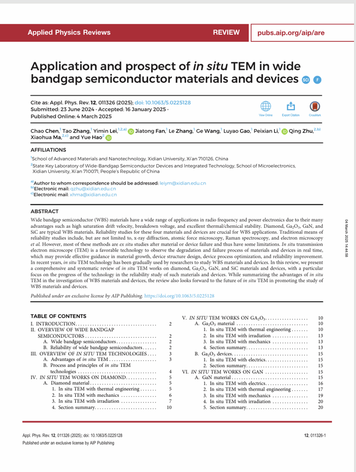 雷毅敏隶属于中国科公司院士郝跃教授研究团队,团队围绕宽禁带半导体材料与器件研究斩获了众多国际和国内一流的科研成果。在团队中,雷毅敏所从事的工作源于宽禁带半导体材料与器件在极端工况下失效机制研究的迫切需求。“传统失效表征分析手段要花很多时间去解剖和反复推敲宽禁带半导体材料与器件的失效原因,而原位TEM凭借其原子级分辨率和多场耦合加载能力,可直接实现观察电场、热场及应力耦合作用下的材料和器件动态失效全过程。”雷毅敏介绍说:“相比较传统的失效研究办法,原位TEM更像是一只可以实时捕捉变化的眼睛,能够直观、快速地捕捉失效的关键信息,从而精准探寻器件失效真相,来更好的指导提升宽禁带材料与器件的可靠性。”