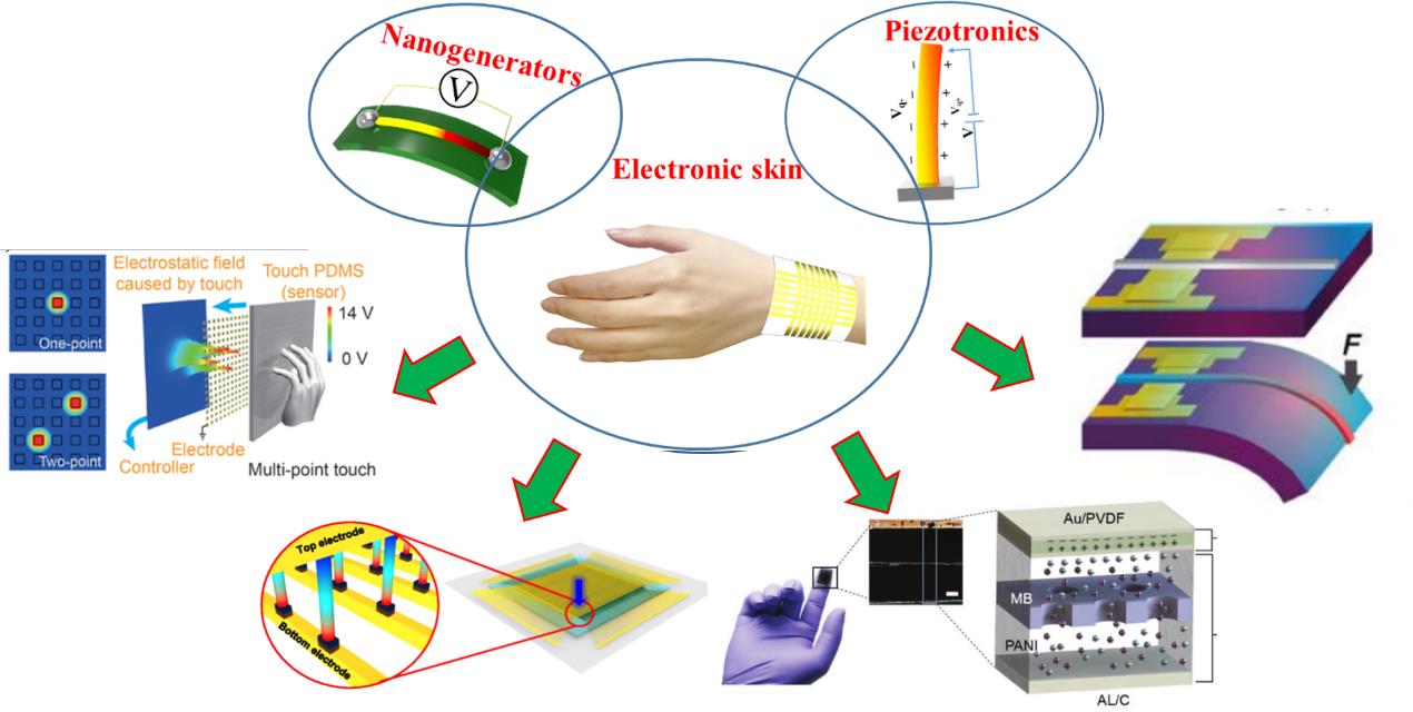 (通讯员:袁慧 赵秉正)电子皮肤模拟人类皮肤感知外界刺激如应力、温度和湿度,在修复学、机器人、可穿戴器件、医疗设备及其他领域上具有发展潜力。早期的电子皮肤分辨度低、能耗高、灵敏度低不能满足现代应用需求。因此探索新的传感机制来提高电子皮肤的感知能力具有重要的意义。压电纳米发电机和压电电子学在机械力发电和电子传输特性的调控等的方面具有极大的应用前景。以压电效应和压电电子学为机理的电子皮肤对外界力的感知具有能耗低、灵敏度高、响应快速等特点而备受关注。