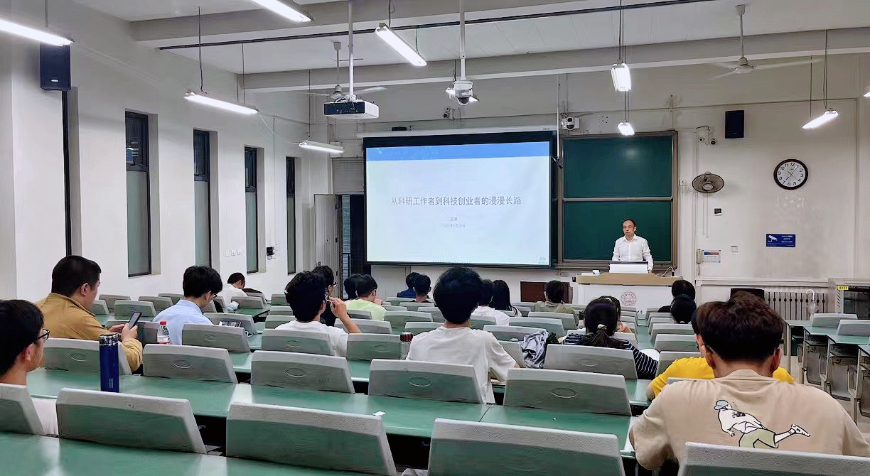 报告会上,张博教授结合自身科技创新创业历程,分享了他在科研及科创路上的经历和感悟,指出人生总是在做选择中度过,每个人都要打好基础,敢想敢做,勇敢抓住人生中的每次机会;无论是科研还是科创,在学科交叉领域会涌现更多创新点,要以终为始,无论科技创新还是创业都不要盲目追求风口,要坚守自己的正确选择,坚持持续投入,只要付出肯定会有收获。他还从“专、精、特、新”等方面,分享了自己对科创企业如何实现从零到一的体会:专就是要学会做减法,进行精准产品定位;精就是要做到精湛,积累优势,选择合适的细分领域,理解客户需求;特就是要有自己的特色,不能仅限于技术;新就是要及时更新,紧跟客户需求。