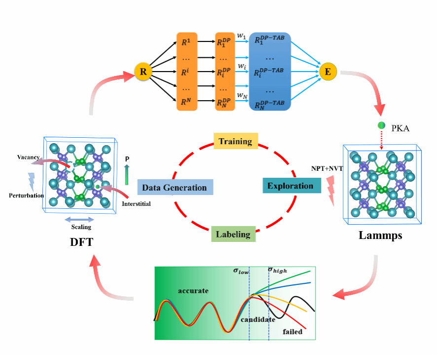 近日,英国365集团周益春教授研究团队在HfO2铁电薄膜辐照效应领域取得突破。该研究采用深度学习与排斥表相结合的方法,开发了一种适用于HfO2铁电薄膜的势函数,将密度泛函理论(DFT)的高精度与分子动力学的高效性相结合,为HfO2铁电薄膜在辐照环境下的位移损伤研究提供了创新性的解决方案。