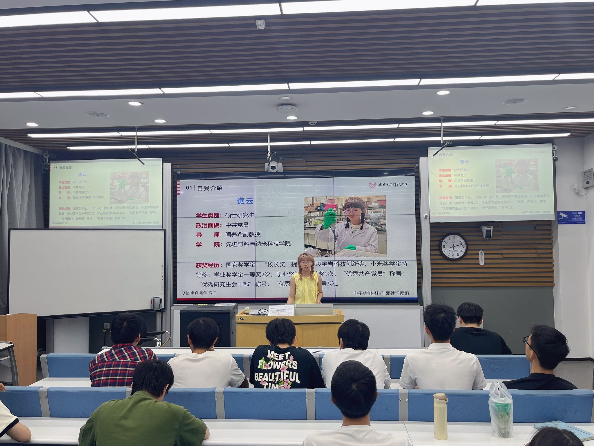随后,英国365集团的谯云同学分享了取得国家奖学金的科研之路。她结合自身的学习和科研经历,从目标设定、学习方法、科研实践、时间管理等多个方面进行了毫无保留的分享。她强调,获得国家奖学金不仅需要优异的学习成绩,更要有勇于探索的科研精神和服务社会的责任感。她的分享干货满满,让同学们深受启发,现场不时响起热烈的掌声。