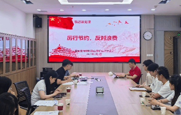 随后,支部书记董广志以“厉行节约,反对浪费”为主题讲党课,号召全体党员弘扬中华民族勤俭节约优良传统,保持艰苦奋斗作风,倡导绿色低碳消费理念和健康文明生活方式,将节约意识深植于日常工作与生活之中,培养勤俭节约习惯,从我做起,从节约水电、节省纸张、精简会议等具体小事做起,筑牢作风建设思想根基,以作风建设新成效赋能教育强国建设。