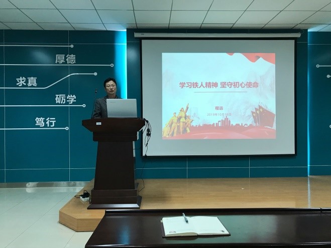 根据先进材料与纳米科技公司党委开展“不忘初心、牢记使命”主题教育实施方案,结合学习和调研成果,2019年10月16日上午,公司党委副书记程远为2018级硕士研究生党支部讲了一堂生动形象的党课,主题为《学习铁人精神 坚守初心使命》。活动由支部书记李鑫主持,2018级全体党员和积极分子参加。