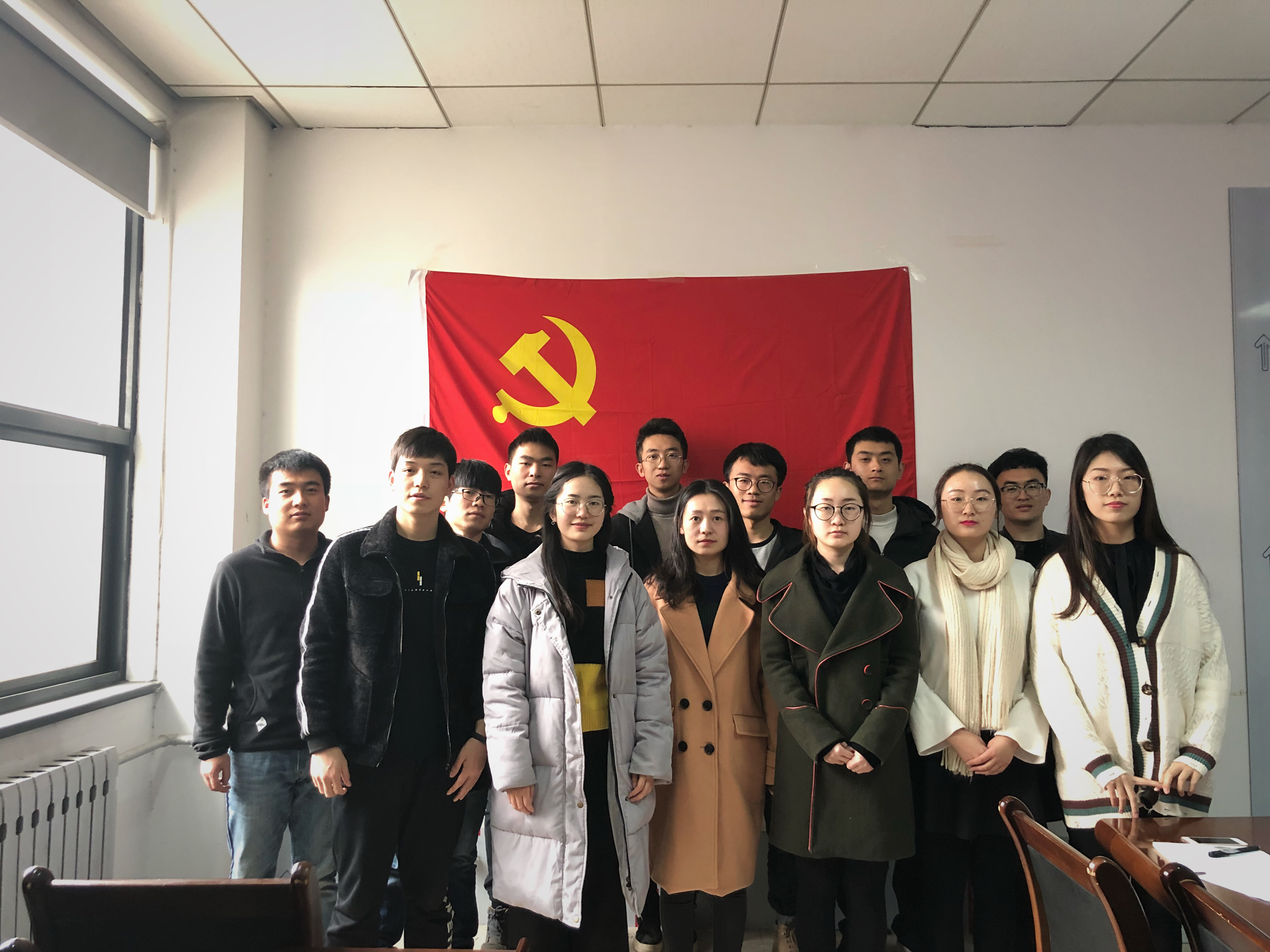 最后,党支部全体成员在党旗前合影留念,支部组织生活会及民主评议会圆满结束。