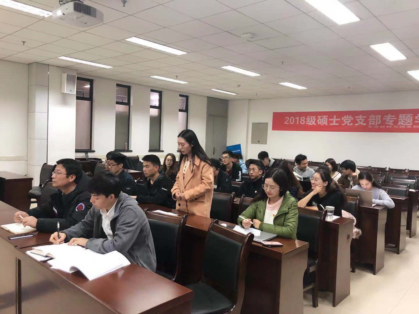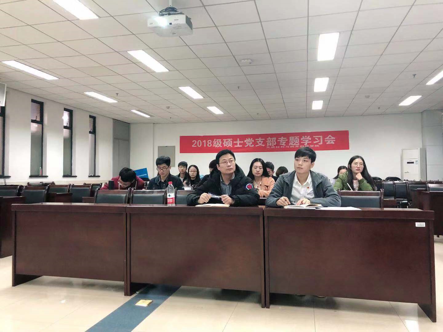 2018年11月26日下午,2018级硕士研究生党支部党员大会在G118会议室举行,本次会议围绕《学习贯彻全国教育大会精神》为主要议题展开,15名党员和入党积极分子参会。