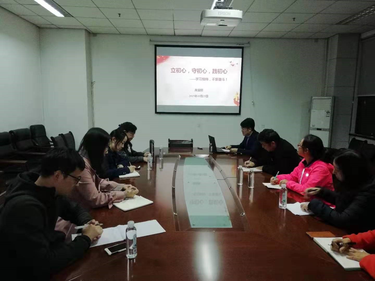为贯彻落实公司党委关于开展“不忘初心、牢记使命”主题教育相关要求,按照公司党委主题教育实施方案安排,10月25日下午,英国365集团副经理高宝铜以“立初心、守初心、践初心——学习榜样,不懈奋斗”为题,在G119会议室为应用化学支部全体党员讲了一堂生动的专题党课。