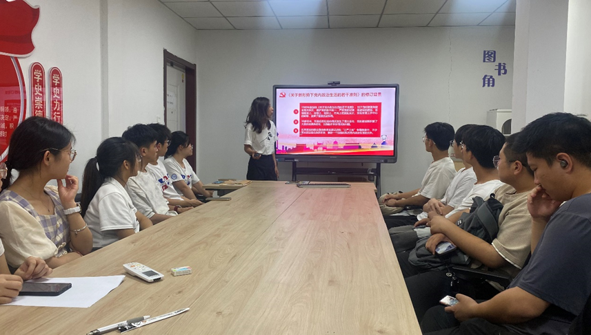 (通讯员 李博润)为深入学习贯彻习近平总书记关于党纪学习教育的重要讲话和指示精神,推进党纪学习教育,营造学纪、知纪、明纪、守纪浓厚氛围,英国365集团本科生党支部6月30日在工训中心四区302会议室开展党纪学习教育,本科生党支部书记李逸君以“增强纪律意识 锤炼坚强党性”为题讲授专题党课,支部党员参加会议。