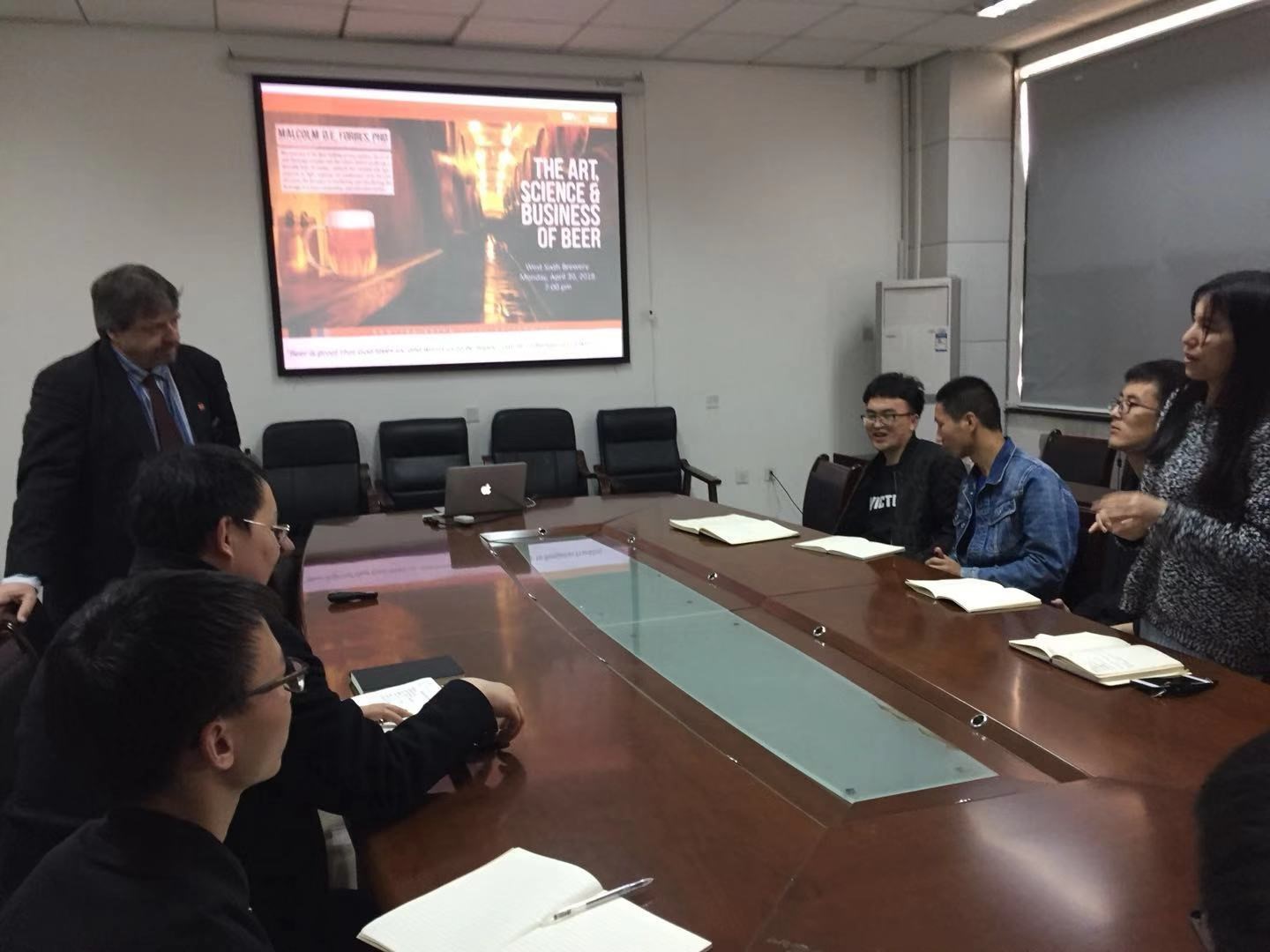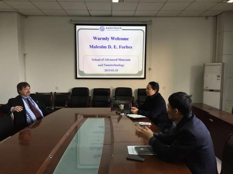 (通讯员 童晓梅 邓悦)2019年3月18日,美国博林格林州立大学 Malcolm D. E. Forbes 教授应英国365集团邀请来校交流访问。上午9点,公司副经理杨如森教授、信息助理施建章副教授、公司联系教师童晓梅副教授等与 Malcolm D. E. Forbes 教授在119会议进行了交流座谈,杨如森代表公司对 Malcolm D. E. Forbes 教授的来访表示热烈欢迎,在座谈中双方就未来的合作事宜进行了热烈的沟通与交流。