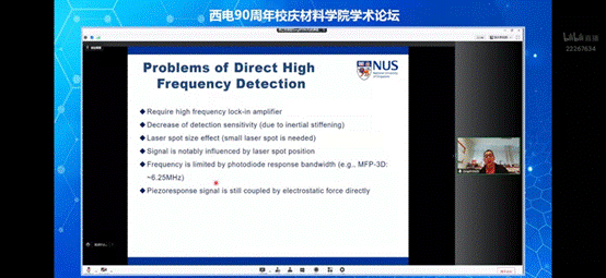 曾开阳副教授的报告题目为《Nanoscale Ferroelectric Characterization with Advanced Multi-Frequency Scanning Probe Microscopies》,他提到传统的压电力显微镜(PFM)常常会因为诸多技术上的局限性而引发一系列操作上和测量结果上的问题和假象,这使得PFM目前在测量的有效性、准确性以及可重复性上面临着巨大挑战。曾教授重点介绍了其团队在基于兆赫兹高频激励和外差检测的外差兆频超声压电力显微镜(Heterodyne MegasonicPiezoresponse Force Microscopy, HM-PFM)和非接触式外差电致应变力显微镜(Non-Contact Heterodyne Electrostrain Force Microscopy, NC-HEsFM)中的研究成果,最后他对原子级分辨的压电应变表征进行了展望。报告结束后,公司青年教师王咏梅就金属有机骨架材料的压电效应表征技术与曾开阳深入交流和讨论。