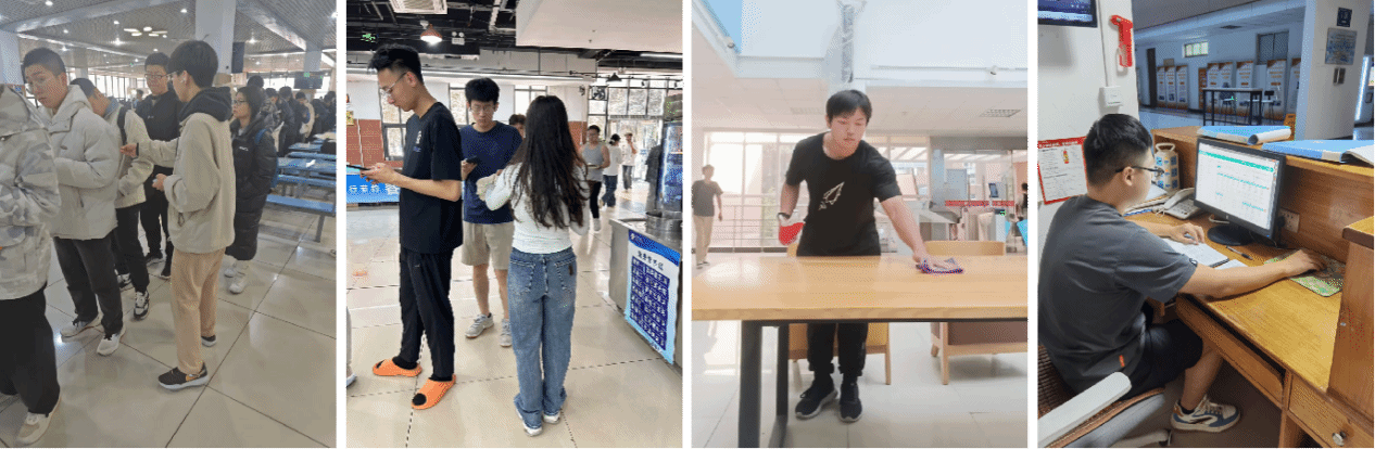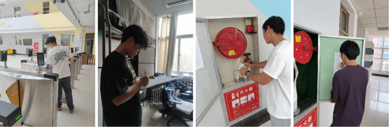 在宿舍管理岗位上,同学们化身“临时楼管”,协助处理宿舍日常事务,包括人员登记、房源信息核查以及消防设施排查等,在深入了解宿舍管理工作的复杂性与重要性的过程中,同学们进一步强化安全意识和责任担当,也更加珍惜后勤工作人员的辛勤付出。在消防检查岗位,同学们认真学习消防设备的使用方法,并对消防设施进行安全核查登记,切实掌握应对火灾等突发安全事件的基本技能,为校园安全筑牢防线。餐饮服务岗位上,同学们积极参与文明就餐倡导与“光盘行动”宣传,耐心引导师生在餐厅门口有序停车以及餐厅内同学们的就餐秩序,为营造文明、有序的校园餐饮文化氛围贡献力量。