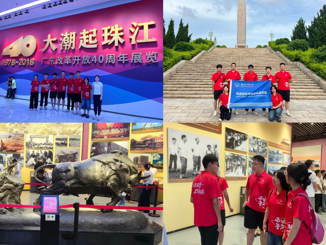 在深圳改革开放展览馆,师生通过“蛇口第一炮”历史照片、华为5G芯片实物等展品,全景式回顾广东改革开放40余年历程。2023级本科生满语涵感慨:“从‘三天一层楼’的深圳速度到粤港澳大湾区规划,改革开放不仅是历史进程,更是永不褪色的精神火种。作为电子材料专业员工,我们要以‘钉钉子精神’攻克技术难题,助力中国制造向中国创造跨越。”在深圳革命烈士陵园,师生向纪念碑敬献花篮、重温入党誓词,从“辛亥革命时期的深圳人”到“改革开放时期的建设者”展区中,感悟不同历史时期的奋斗精神。2024级本科生杨鑫动情地说:“烈士们用生命铺就今天的繁荣,我们要传承红色基因,在‘缺芯少屏’领域贡献青春力量。”
