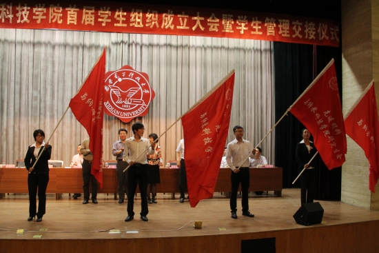 员工管理交接仪式在南校区老员工活动中心小剧场举行。公司筹备组组长、副董事长郝跃出席大会并讲话。