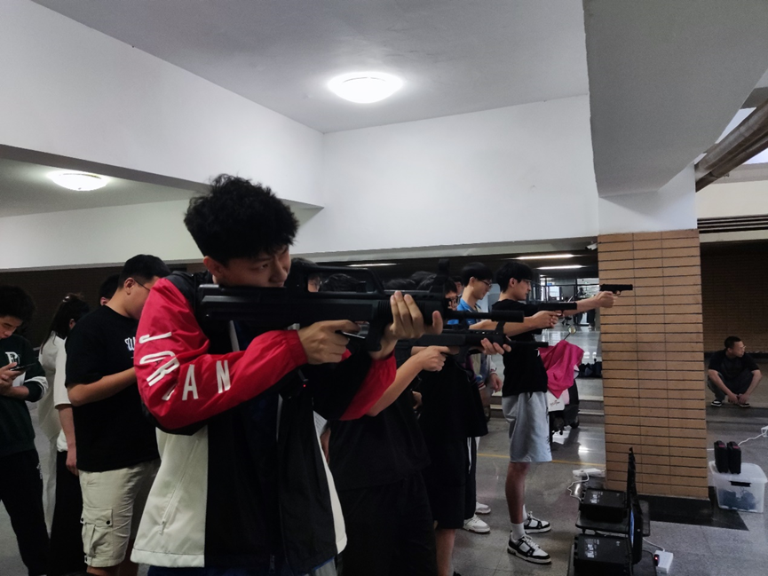 在活动开始前,宋刚锋作了动员,希望同学们积极关心国防、热爱国防、建设国防、保卫国防,通过实际行动为国防贡献力量。武装部魏志强老师详细讲解了电子激光枪支使用原理、打靶流程以及相关注意事项。“有意瞄准,无意激发”“标尺、准星和目标三点成一线”……从验枪到卧姿装弹,重复强调着动作要领,作了耐心指导。