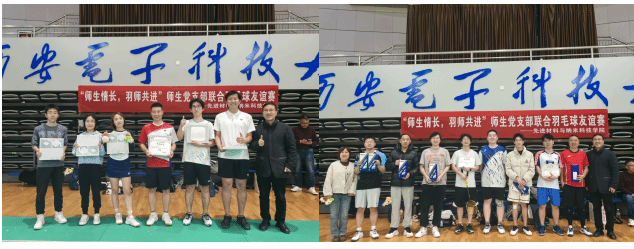 比赛现场气氛热烈,来自各教师以及研究生党支部的参赛选手们热情高涨、全力以赴。比赛为双打项目,选手们遵循友谊第一、比赛第二的原则,在球场上相互切磋、相互鼓励,既展现了顽强拼搏的竞技精神,又彰显了尊重对手、尊重裁判的良好体育风尚。赛场上,师生们一改平日课堂与办公室中的严肃形象,化身活力四射的运动员,轻盈的吊球、凌厉的扣杀、精准的接球,每一个精彩瞬间都赢得了观众们的阵阵喝彩与掌声。