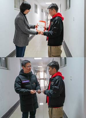 仪式伊始,李逸君向大家逐一介绍了李兰、邱嘉俊、武新明等11位预备党员同志的基本情况。接着,程远为同志们佩戴党徽、授牌,并语重心长地对他们说:“党员身份是荣誉,更是一份责任。希望你们今后初初争先进、实实做表率,带领身边同学走好当下,创造未来”。随后,党员同志们郑重地将承载着使命、责任与荣光的“党员宿舍牌”挂在了门上,并接受了吴微赠与的《中国共产党简史》、《致丁香一号书院全体员工党员的倡议书》。吴微满怀希冀地对大家说道:“祝贺你们在建党100周年光荣地成为了中国共产党党员,希望你们不忘初心、牢记使命,沿着先辈的红色道路继续奋斗,开辟新天地、书写新篇章。”最后,党员同志们与程远、吴微合影留念。