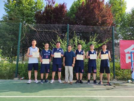 经过两周的激烈比拼,研二代表队连下三城,冠军已然收入囊中,而亚军与季军将由研三与教工代表队的关键一战决定。双方球员上场,奋力拼杀,都想拿下这关键一战。教工队凭借着默契的配合与精准的投篮,在上半场拉开8分的优势进入下半场。下半场,研三代表队改变防守策略,由联防换成盯人,数次抢断快攻得手,反超比分,而这时教工队也不甘示弱,两记中投稳住局势。时间来到最后三十秒,教工队手握1分领先,双方各有一攻的时间,研三代表队直杀篮下,三抢进攻篮板终于打进,反超一分!教工队最后一攻,发球被抢断!最终研三代表队赢得了这场胜利,荣膺亚军,教工代表队获得季军。公司党委书记卢硕和党委副书记程远分别为获奖团队颁发了荣誉证书。