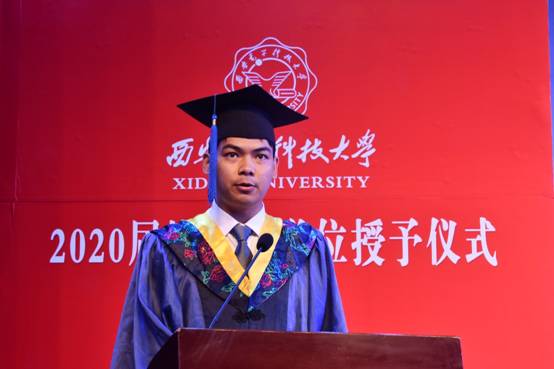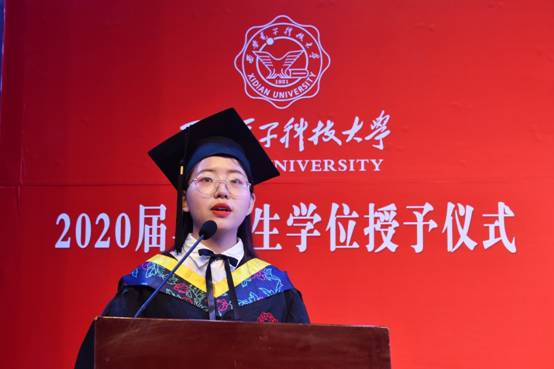 本科生岳新、硕士研究生党丙杰分别代表毕业生发言。在发言中,他们回忆了在校期间与老师、同学之间一幕幕难以忘怀的时刻,有刚入学对校园生活的憧憬,有多年生活的点点滴滴逐渐升华的强烈情感,有在求学期间的收获与成长,几年的西电求员工涯,终将为每一位毕业学子刻上深深的西电烙印。不忘初心,砥砺前行,他们代表2020届毕业生感谢母校、公司以及辛勤付出的老师们的培养和帮助。