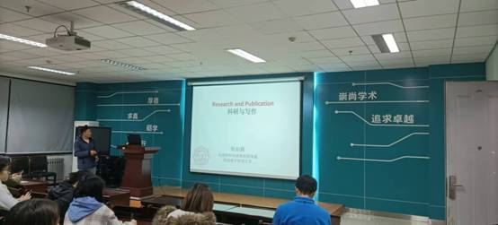 报告伊始,杨如森以“书山有路勤为径,学海无涯苦作舟”作为引子,讲述了自己早年跟随王中林院士求学的种种经历与近些年的收获感悟。以“beaprofessor”,“beastudent”,“beaseniorstudent”和“howtogetfamous”四个大板块为主线,就大家如何安排和度过自己的研究生生活提出了很多建议。杨老师强调当代研究生要学会处理好“天分与努力”,“兴趣所在与必须去做”,“面对面交流与邮件交流”,“积极交流与独立思考”,“团队合作以及独立工作”,“做实验与读文献”这六大主要基本矛盾。他还鼓励同学们要努力拥有好奇、自信、坚持、谦逊等特质。谈笑之间,杨老师又结合自己开展科研工作的种种思考,就同学们如何做科研,在科研中会遇到哪些问题,如何去解决以及毕业时的收获等方面做了详细的讲解。