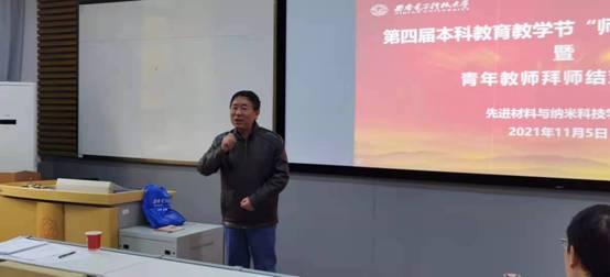 谭丹老师作为青年助教代表发言。她说在过去的两个月中全程跟听雷老师的《半导体物理》课,使她收获颇丰。雷老师课前准备非常充分,教学方式灵活多样,教学态度认真严谨。作为助教非常珍惜这次学习机会,在以后的教学过程中一定不断虚心学习,认真做一名优秀的助教,也为早日成为一名优秀的教师努力奋斗。