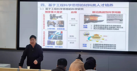 周益春教授结合自身几十年的教学、科研工作及人才培养的思考,为大家奉献了一场精彩报告。他从大学和基础教育、我国老员工现状与材料类创新人才需求、基于钱学森工程科学的材料类人才培养理念、基于工程科学思想的材料类人才培养、青年教师的健康成长五个方面进行了详细阐述。